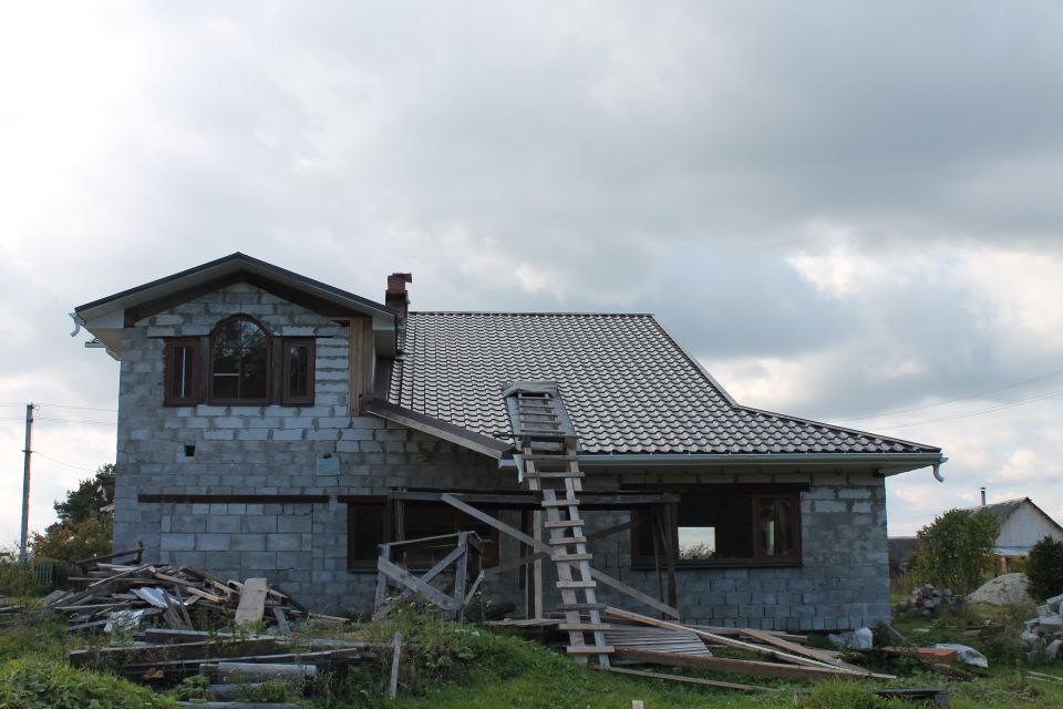 Монтаж, реконструкция мансардного этажа с установкой водосточной системы. Заказчик: Частное лицо