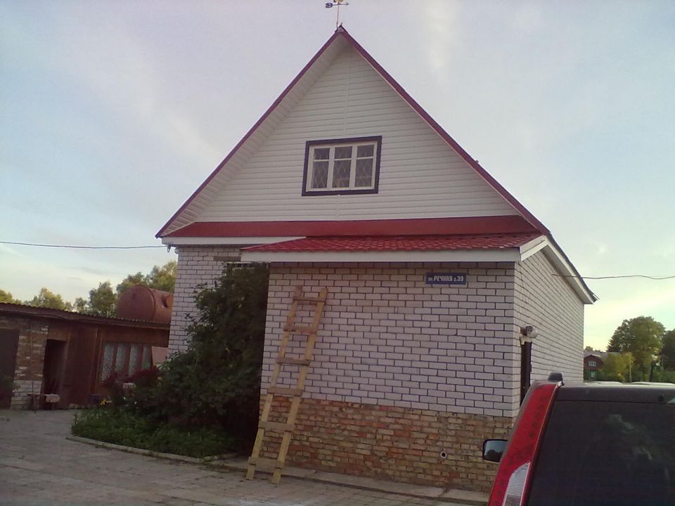 Монтаж кровли из металлочерепицы и отделка фронтонов сайдингом.