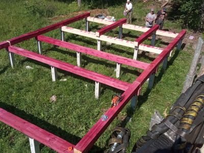 - монтаж сруба и кровли